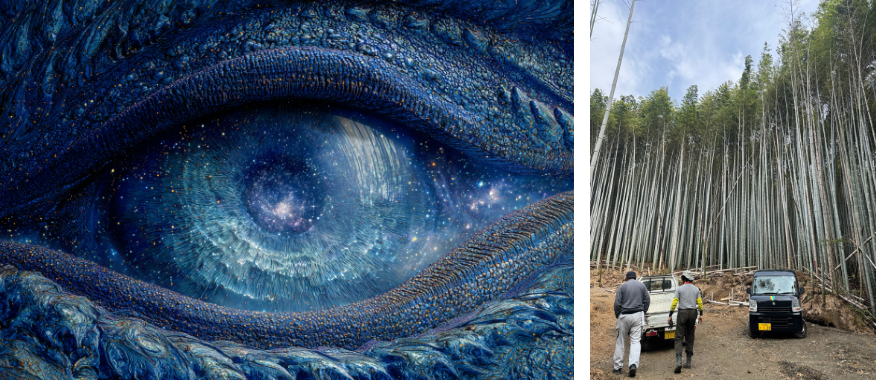 Creates documentary films focusing on local communities and daily life. This exhibition presents films capturing local residents’ encounters with AI during the open studio, as well as video works based on research on abandoned bamboo areas and the landscapes of Ohara.